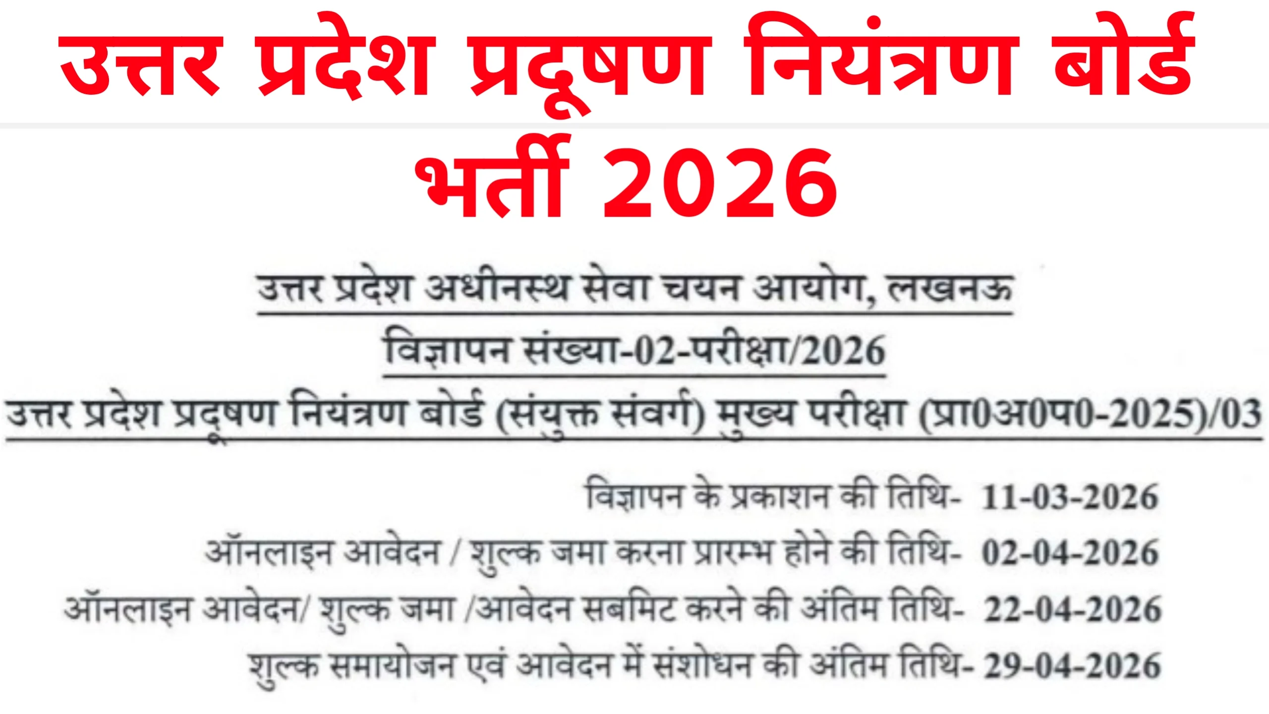 UPSSSC Pollution Control Board Recruitment 2026 Important Dates